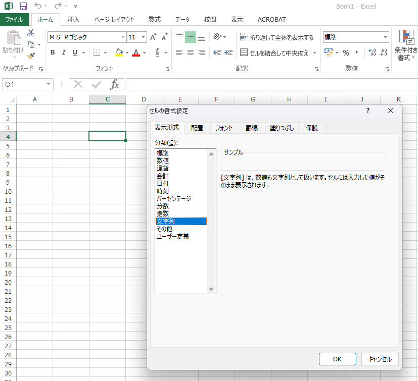 方法1:セルを「文字列」にする
