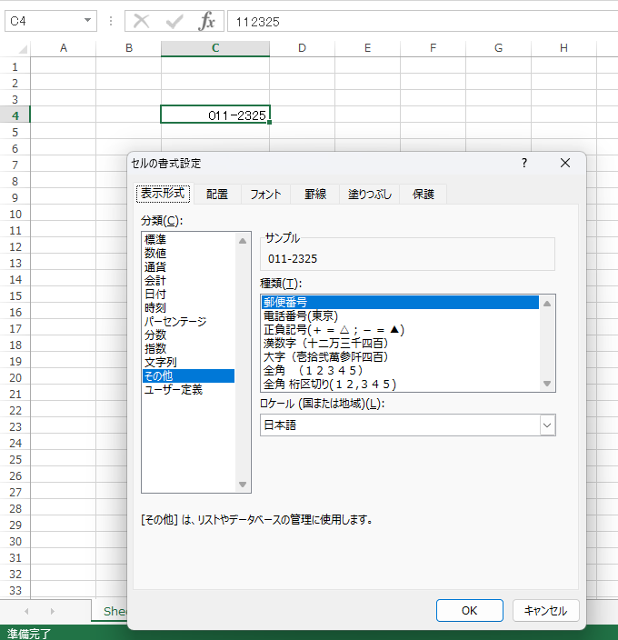 郵便番号や電話番号は「数値」ではなく「文字」として扱うのが基本です。