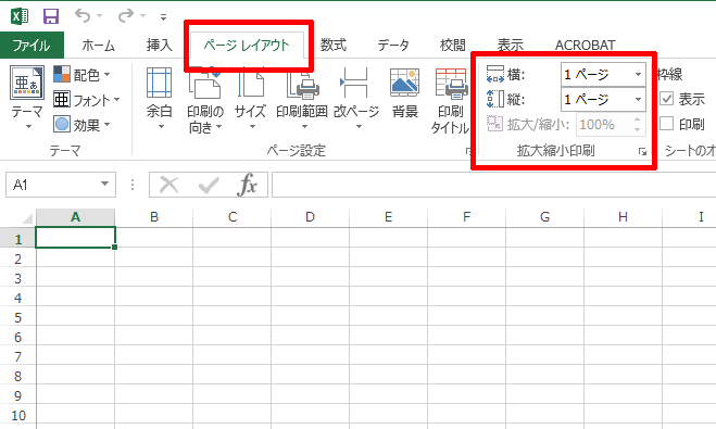2. 「拡大縮小印刷」の「横 1 ページ、縦 1 ページ」を選択