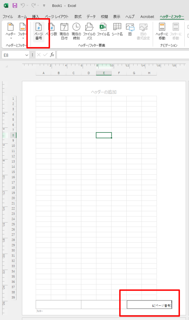 Excelでは「ヘッダーとフッター」を使うことで、簡単にページ番号を入れることができます。